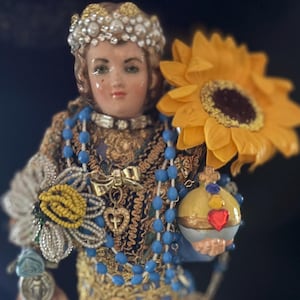 Note: The Face, Hands and Feet have been softened with a mottled paint style . Approximately Measures 9.5" Tall bottom is signed 2nd Hand Revival 2019 by K Davison see photos for details - handmade art
