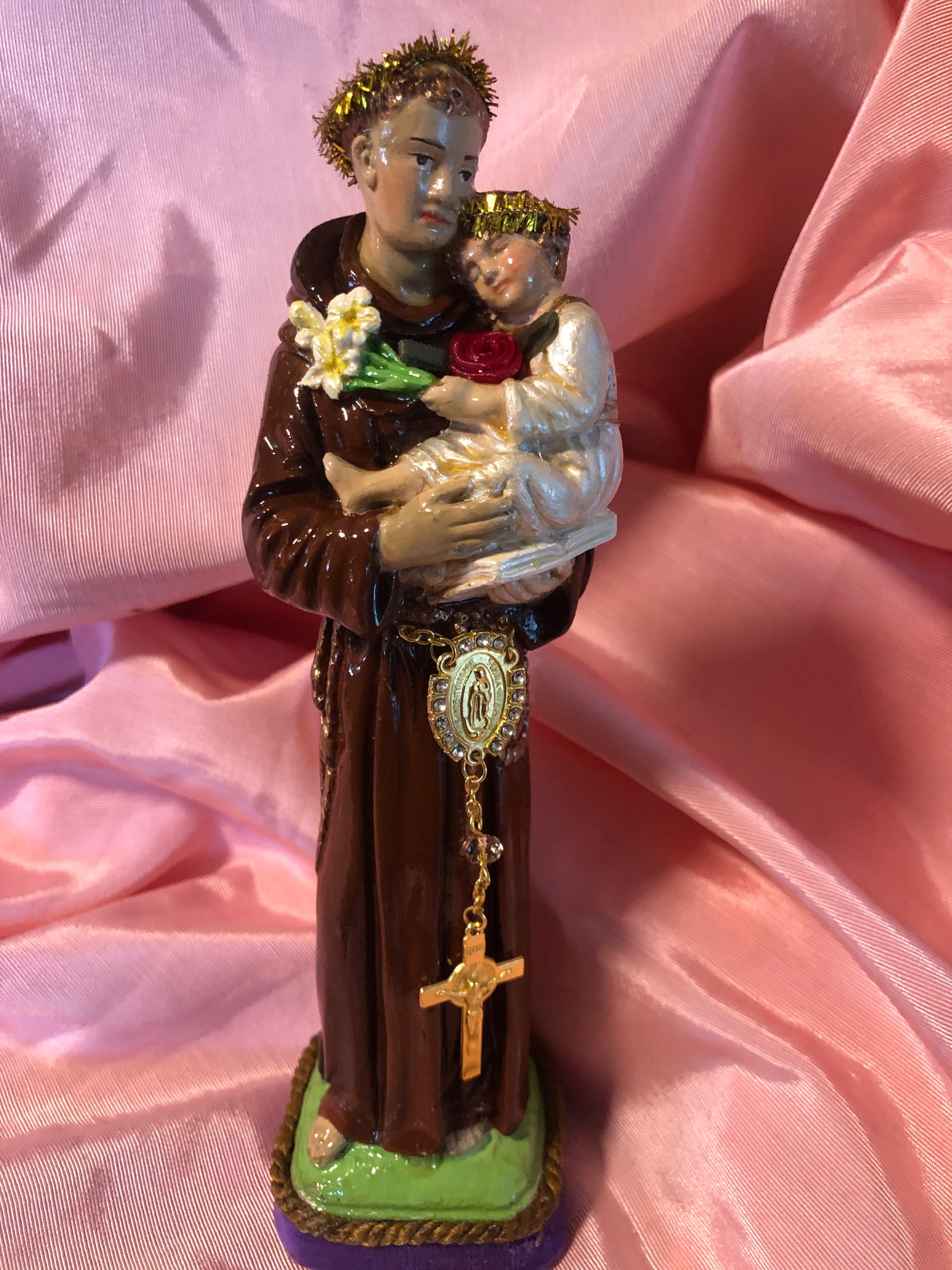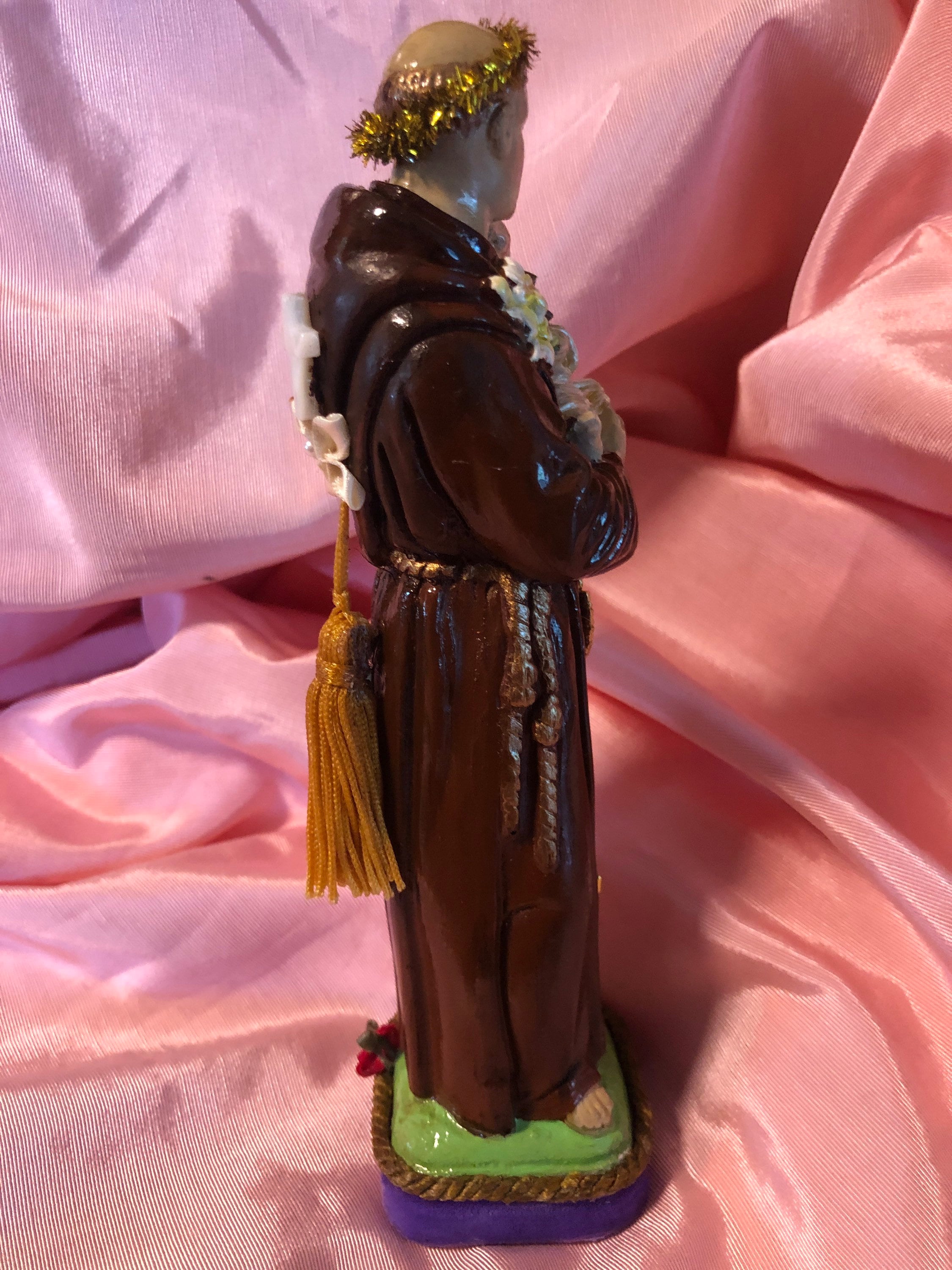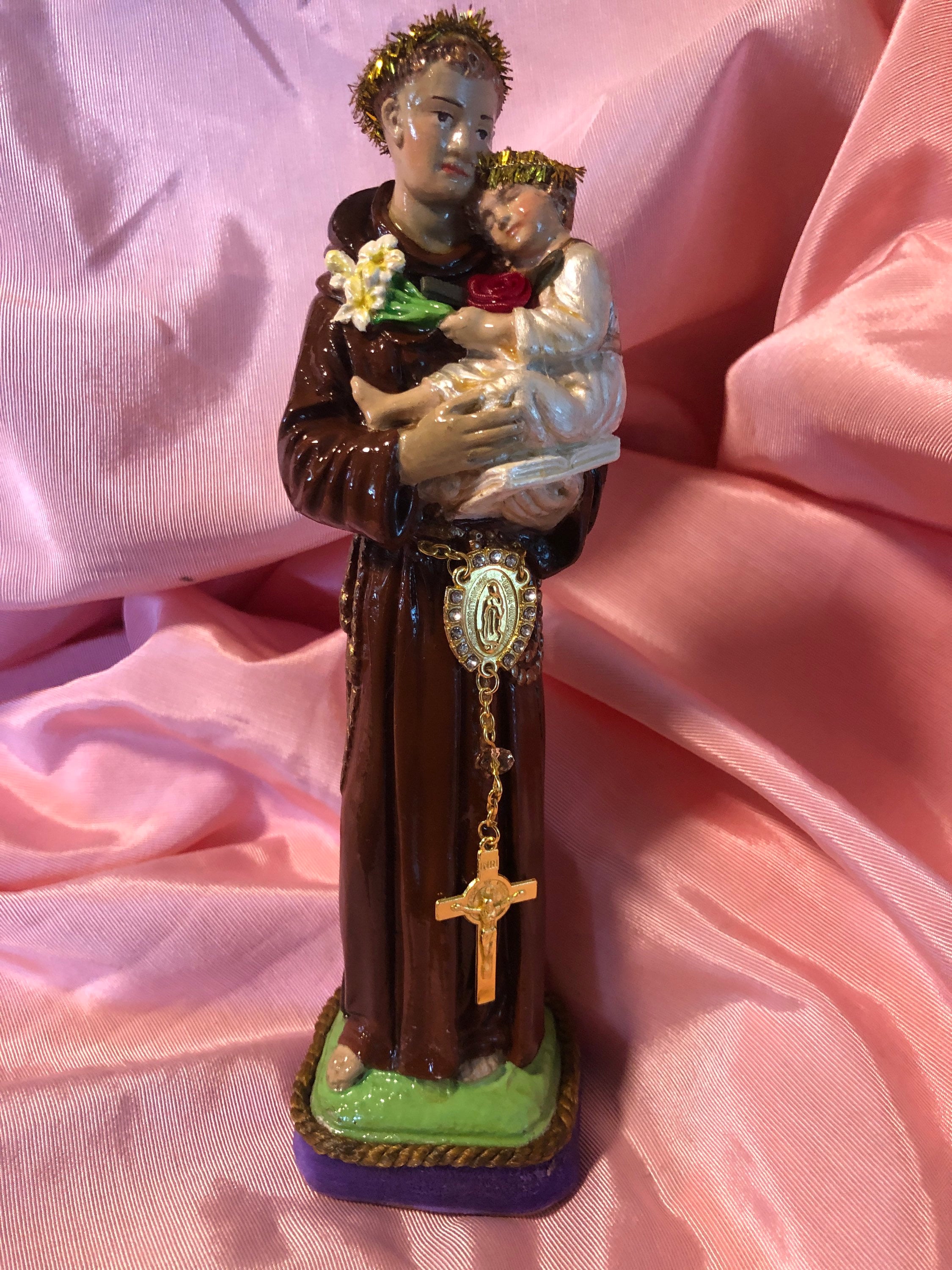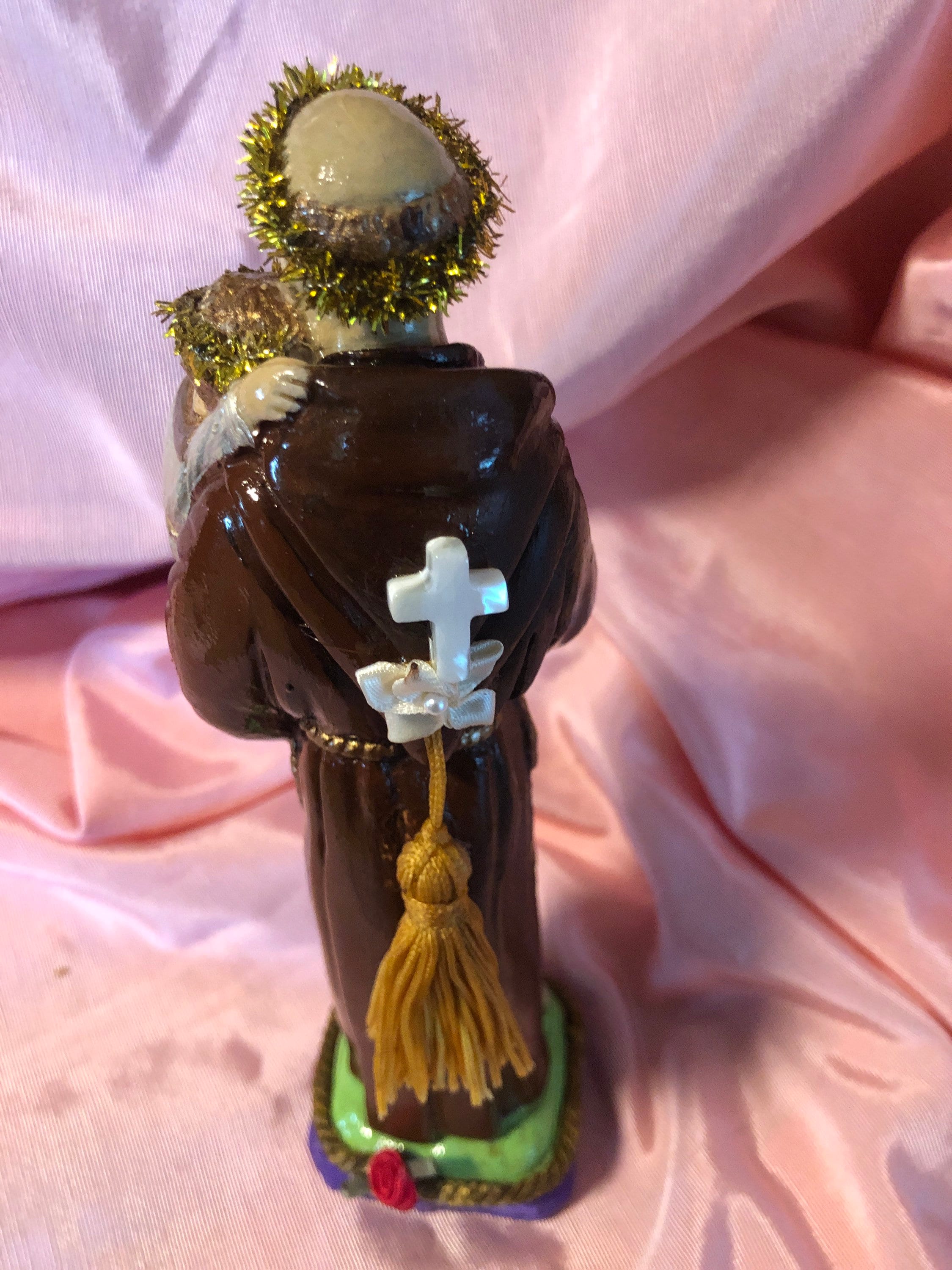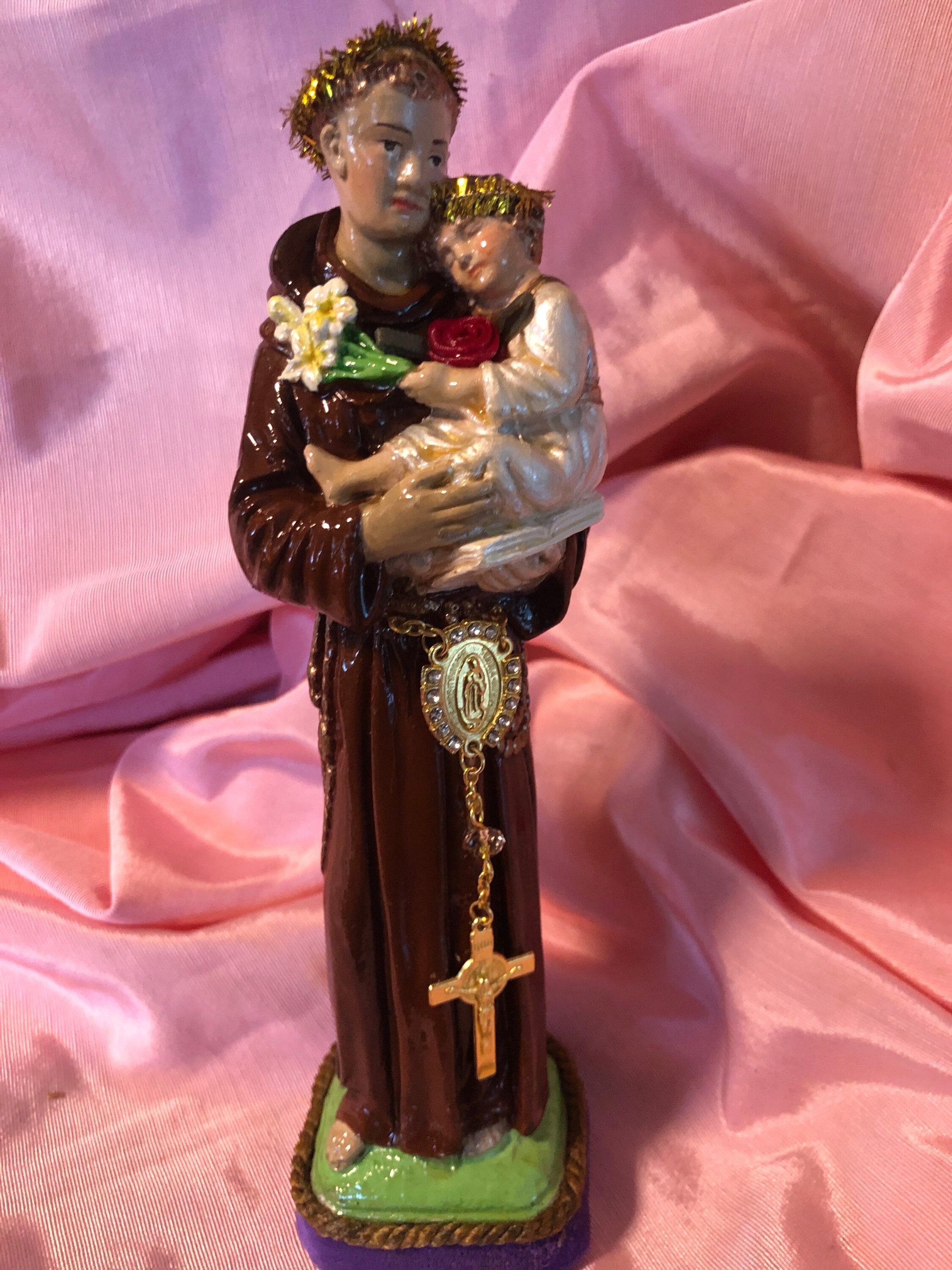 Art Statue by 2nd Hand Revival ST. Anthony of Padua 9" Tall Devotional Art - One of a Kind 2nd Hand Revival takes old vintage religious statues that have had prior age use & discolor or damage and turns each piece into a unique piece of art ! Our pieces are not perfect and we don't want them to be perfect. We are 2nd Hand Revival as we bring back to life these beautiful old statues.