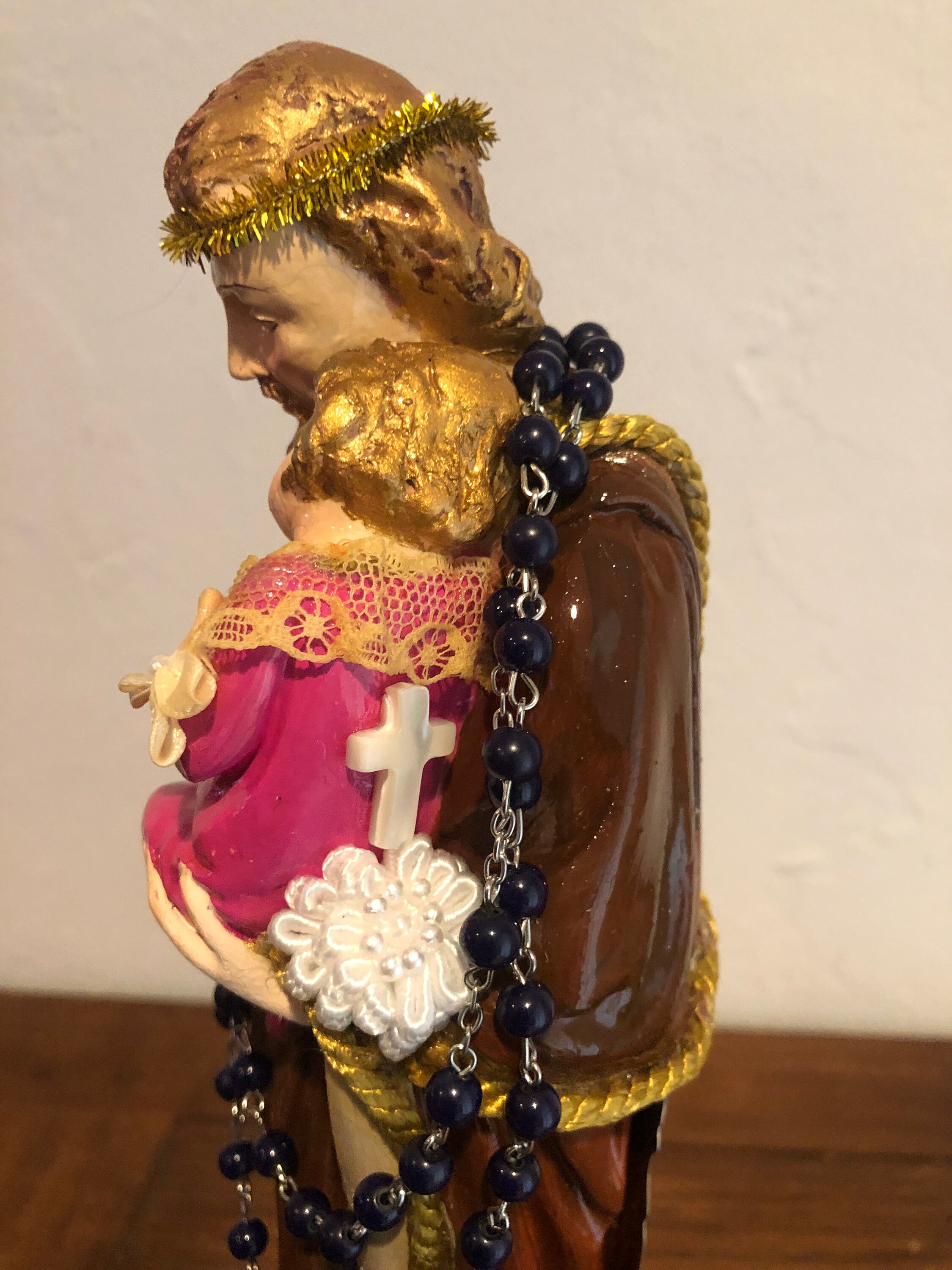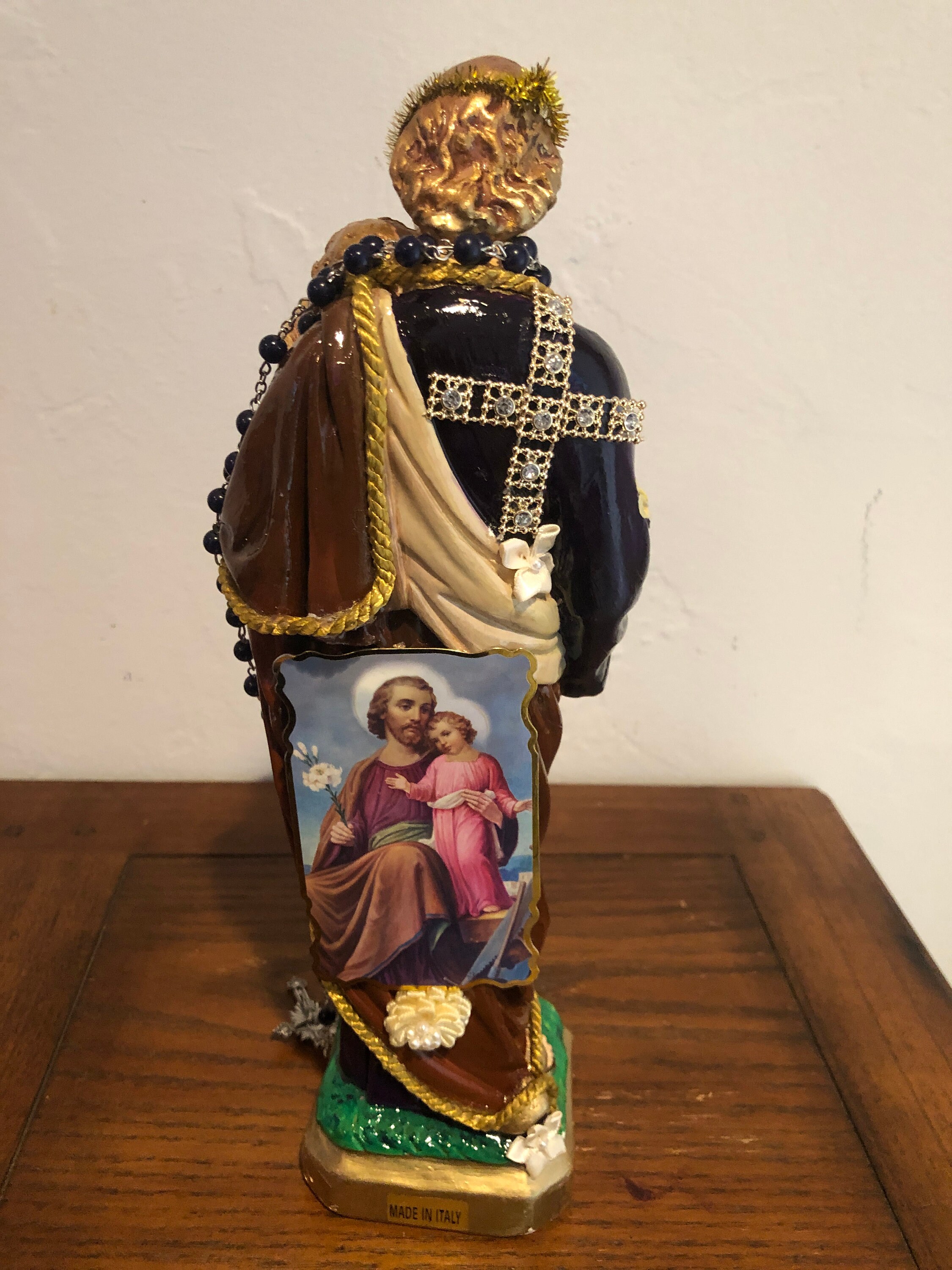 Art Statue by 2nd Hand Revival ST. Joseph & Baby Jesus Devotional Art - One of a Kind 2nd Hand Revival takes old vintage religious statues that have had prior age use & discolor or damage and turns each piece into a unique piece of art ! Our pieces are not perfect and we don't want them to be perfect. We are 2nd Hand Revival as we bring back to life these beautiful old statues.
