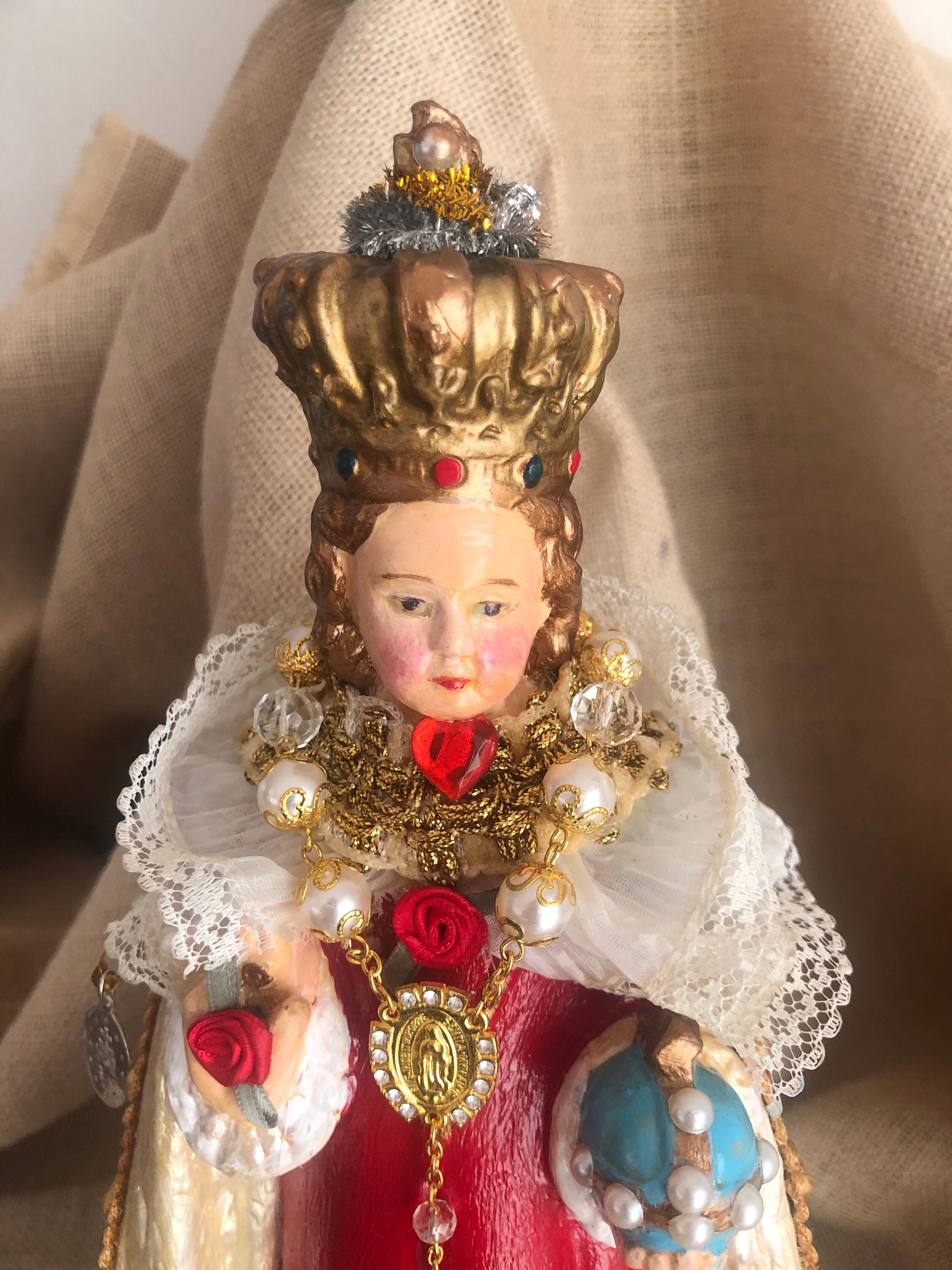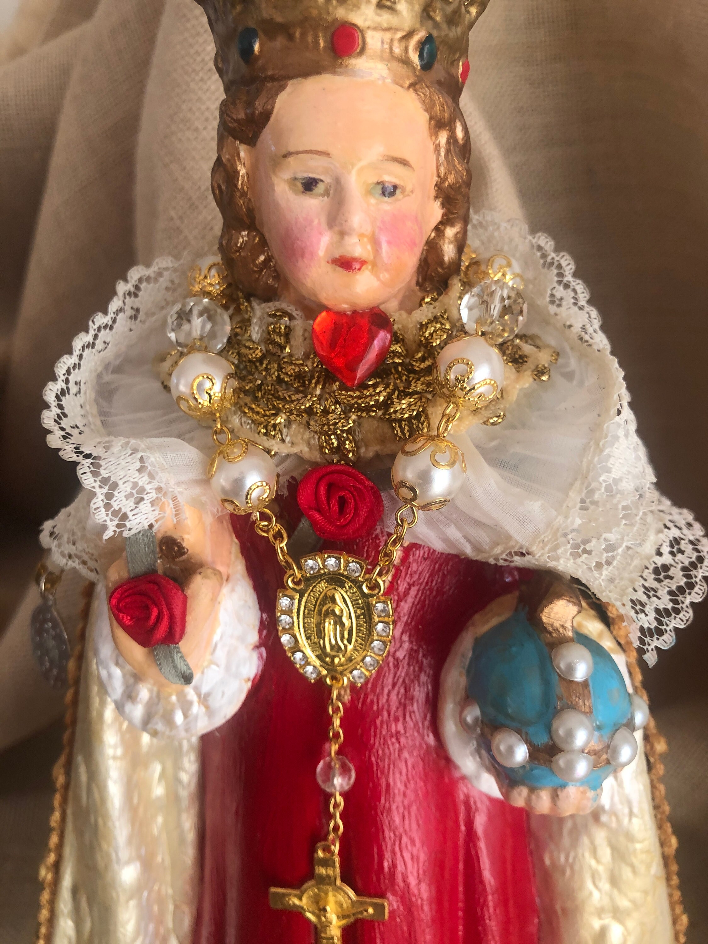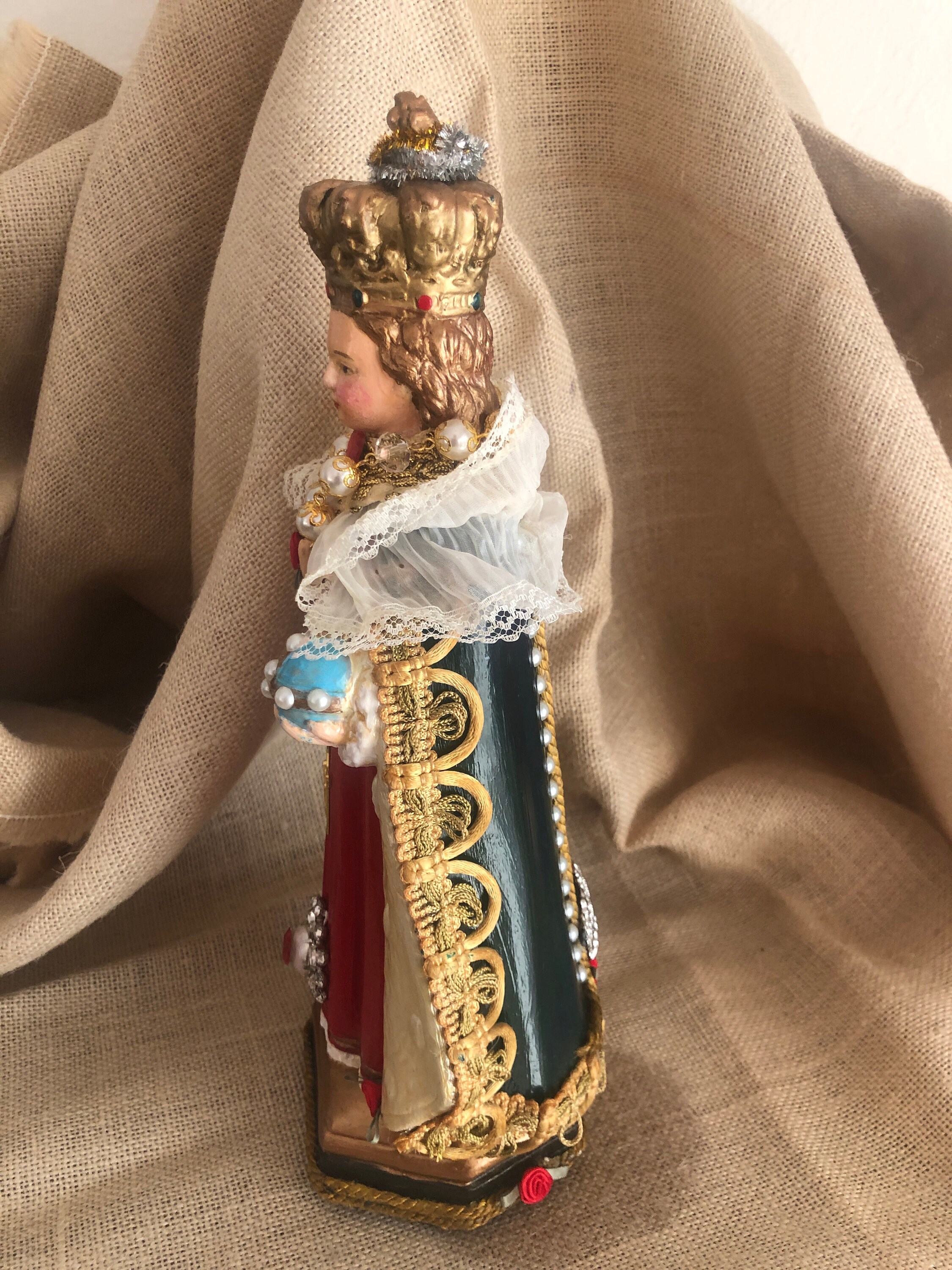 Infant of Prague Devotional Art Statue Red & Green Intant of Prague