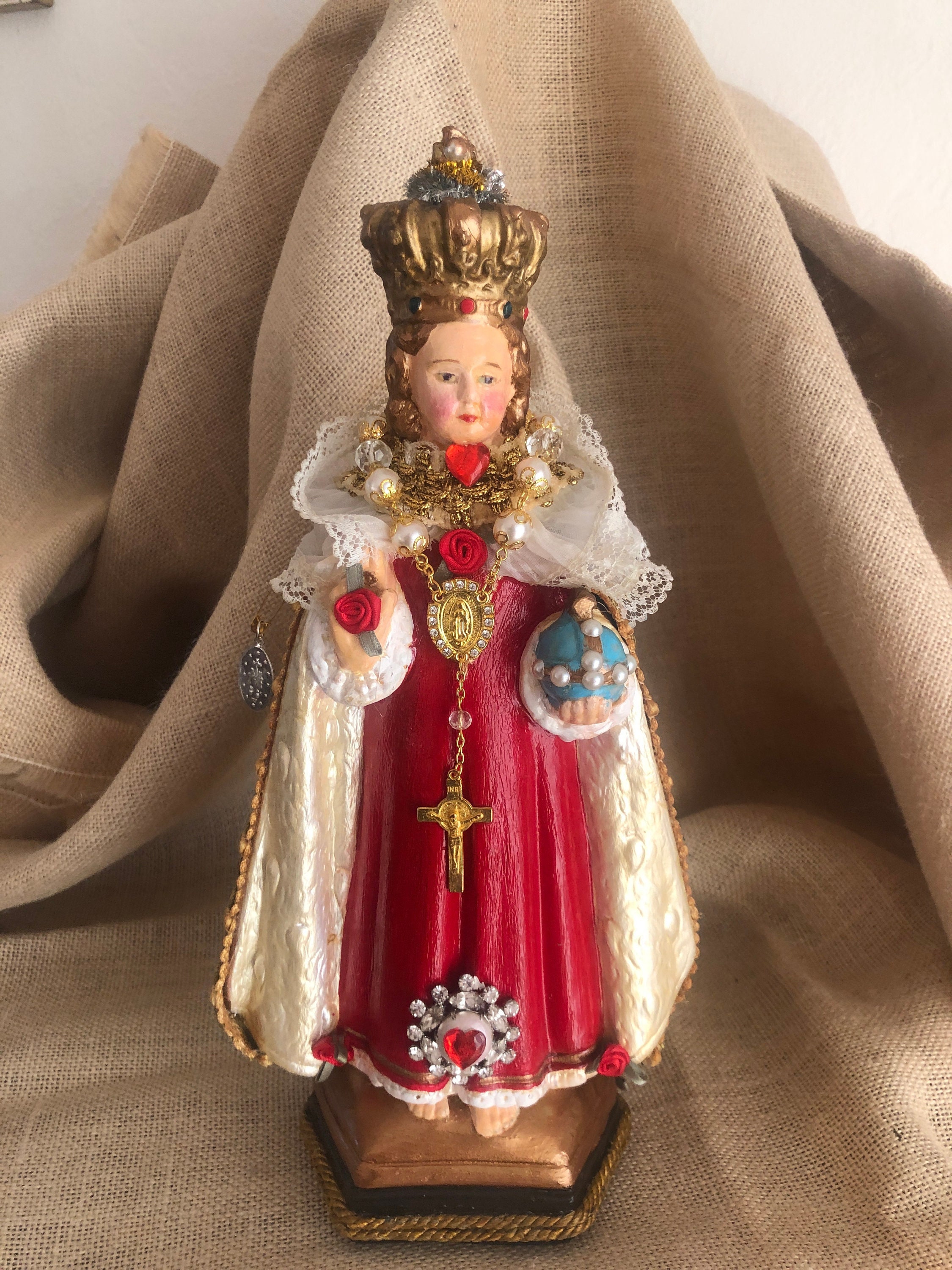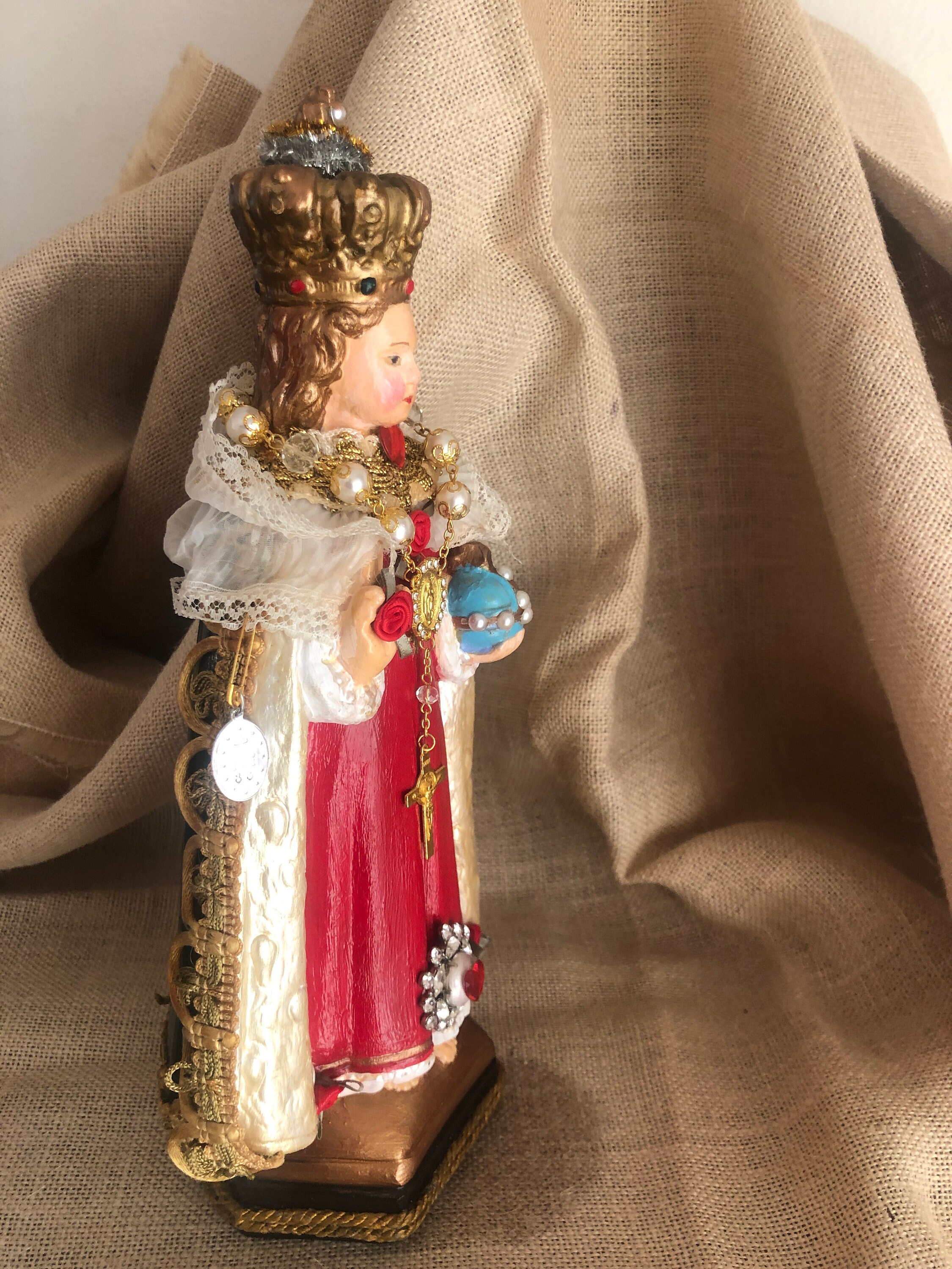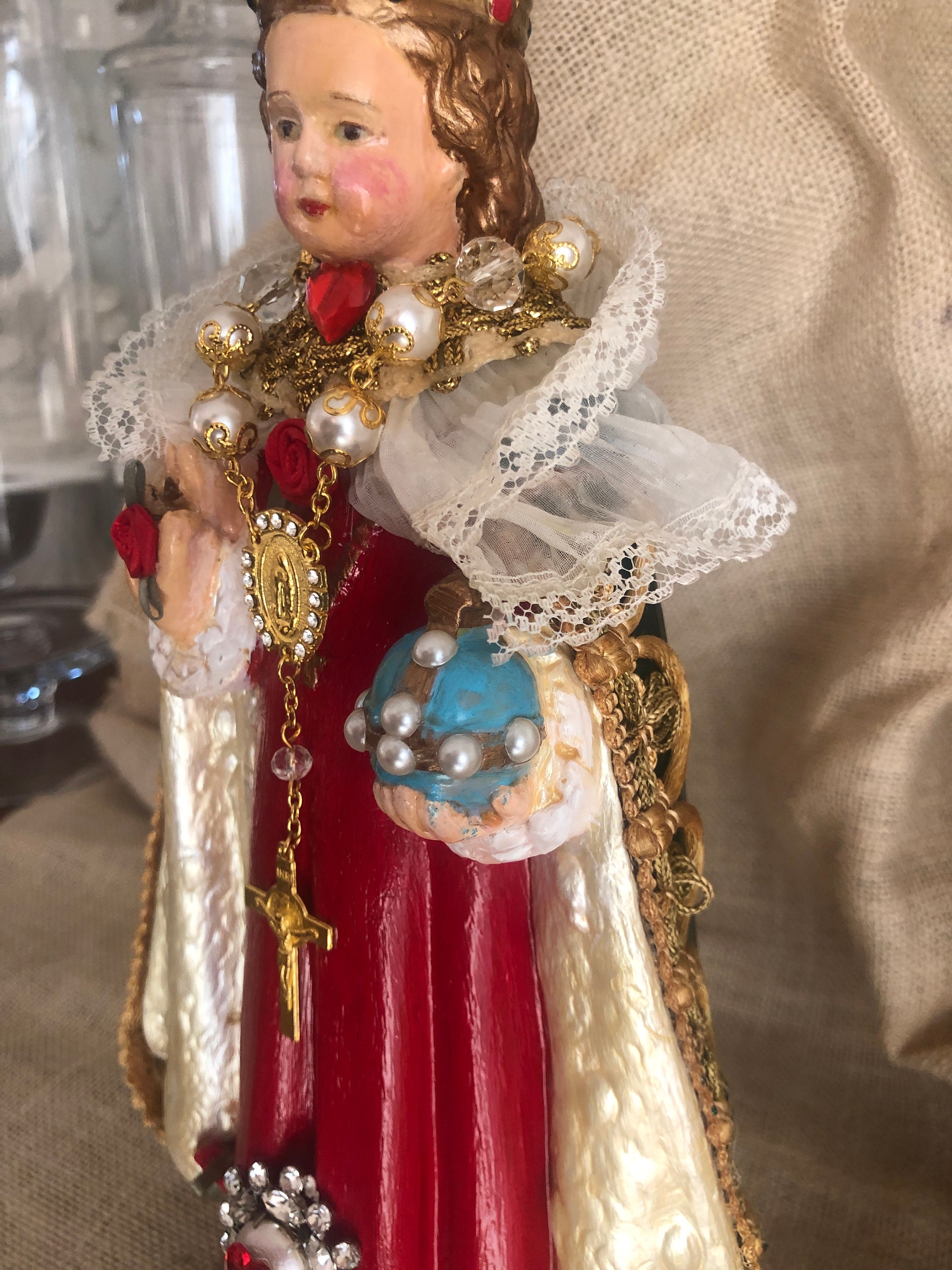 Infant of Prague Devotional Art Statue Red & Green Intant of Prague