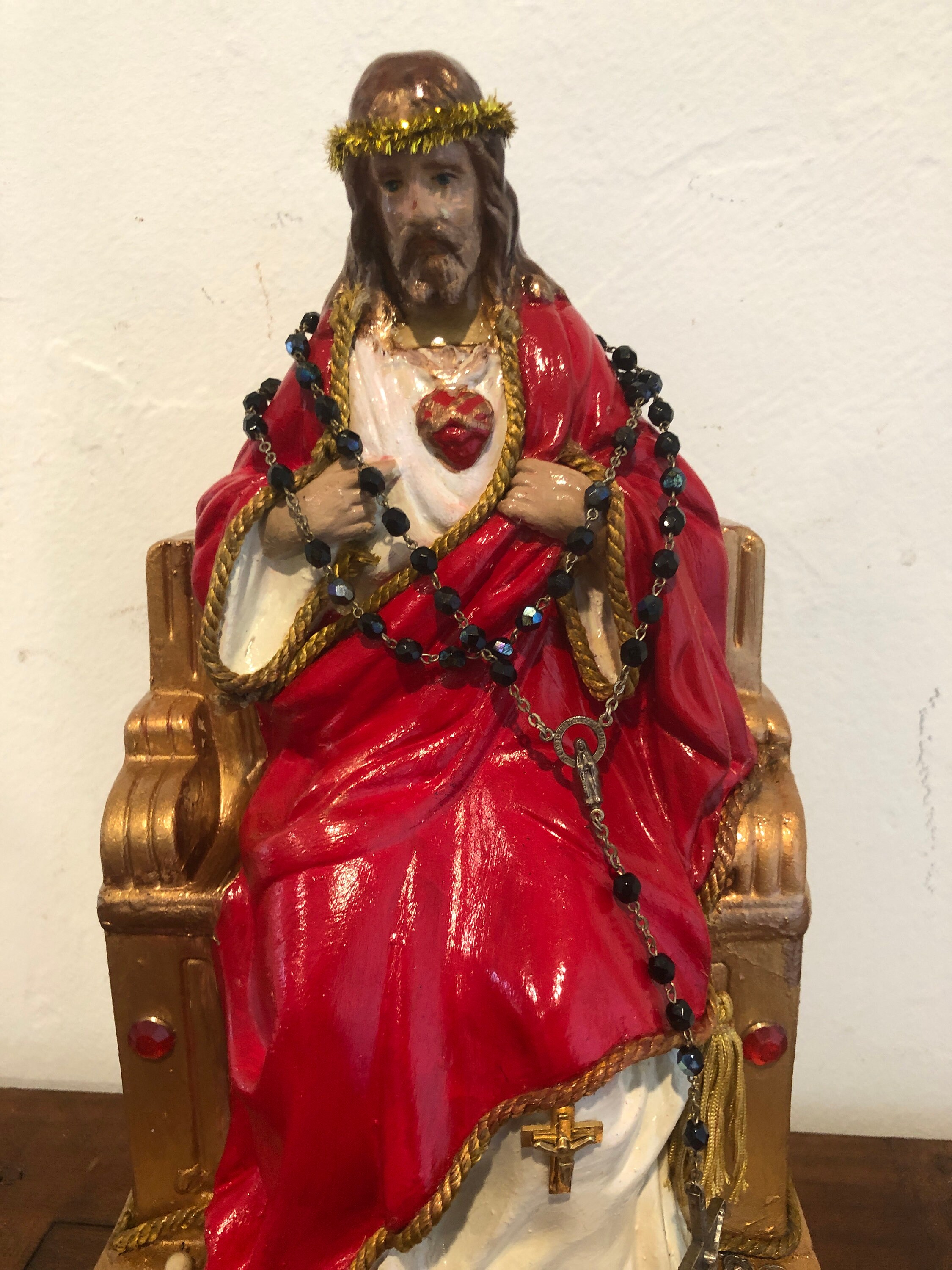 We painted a True Red and White to the robes . Beautiful Antique Gold Rose Trim