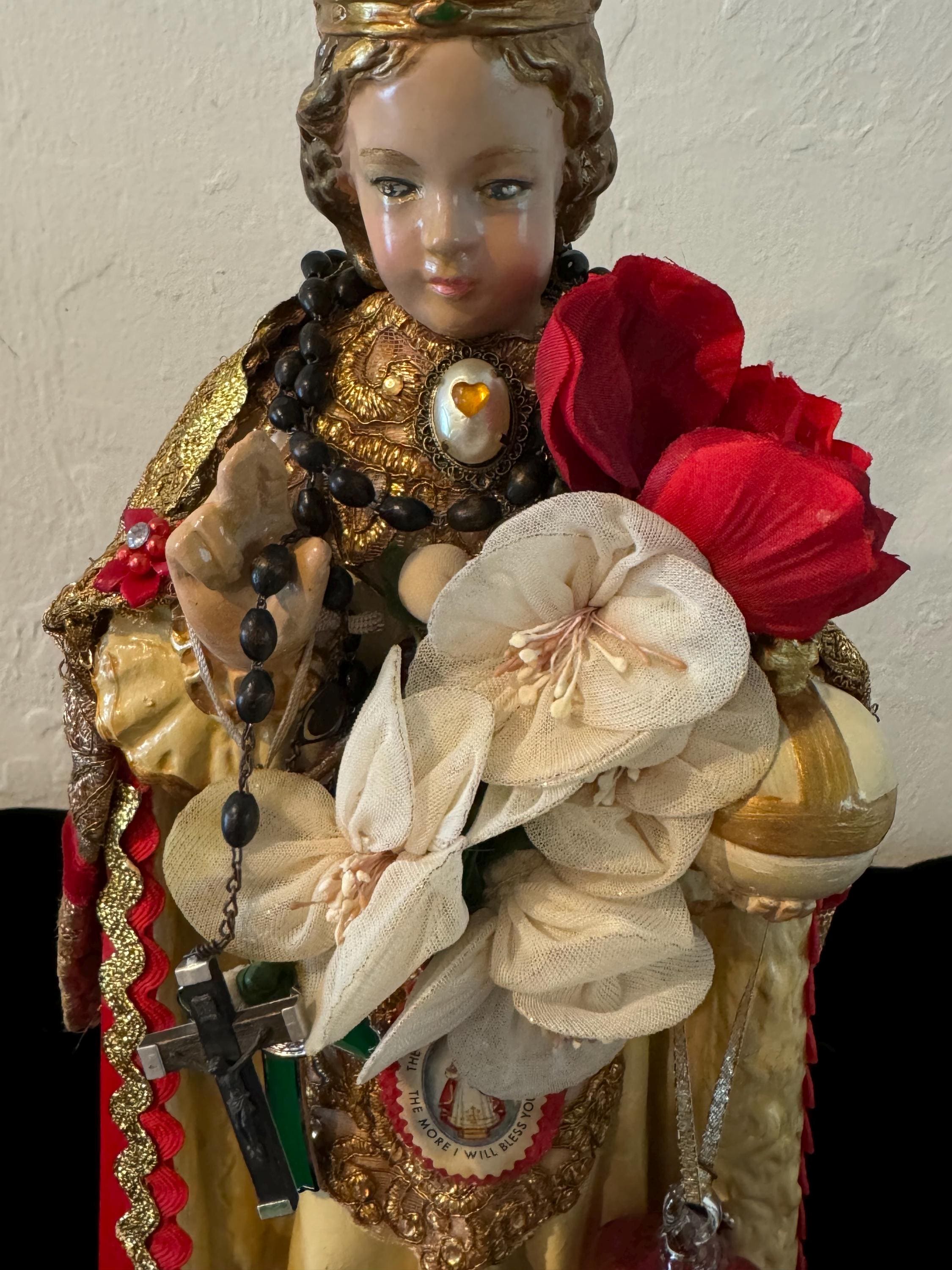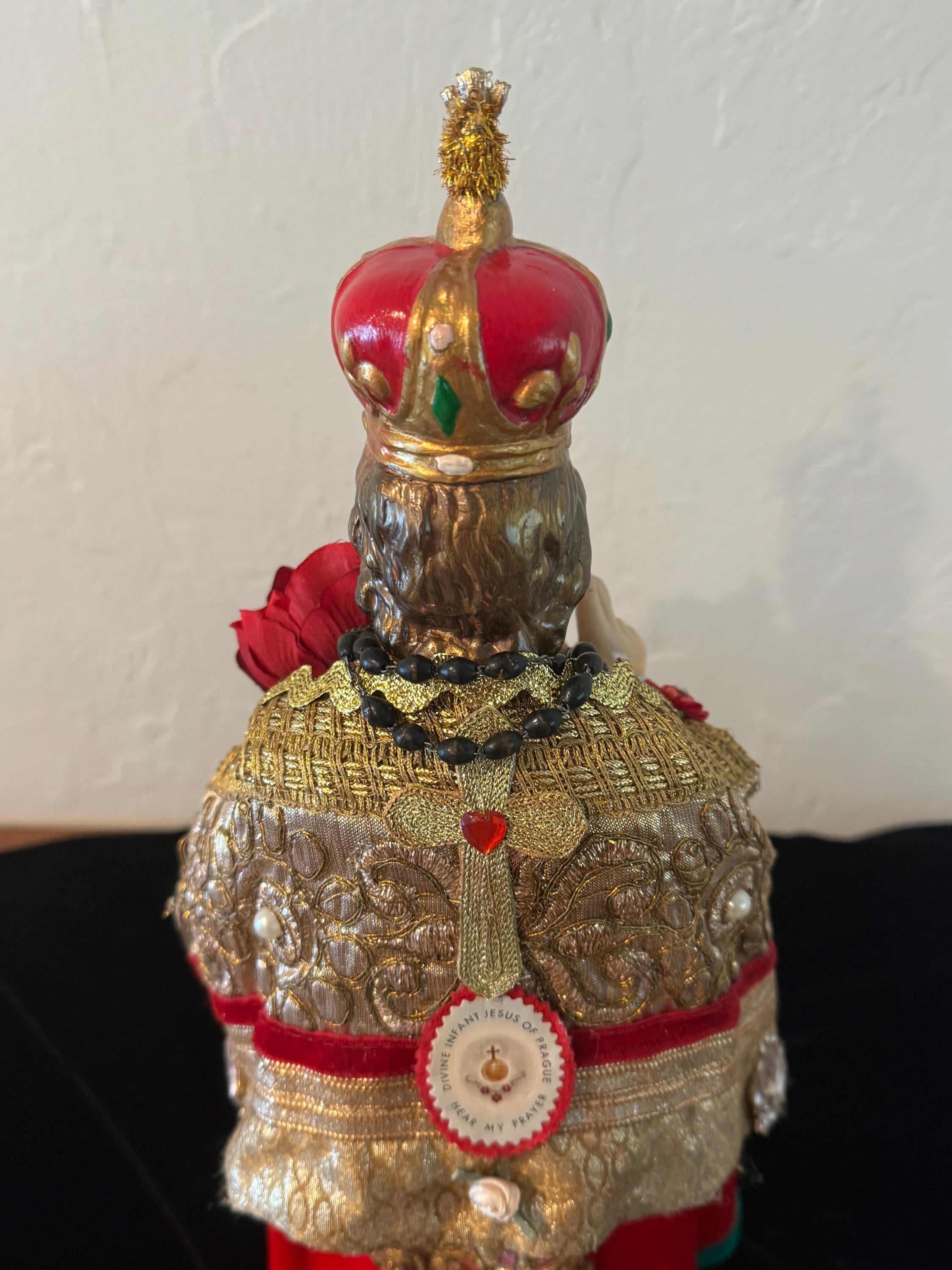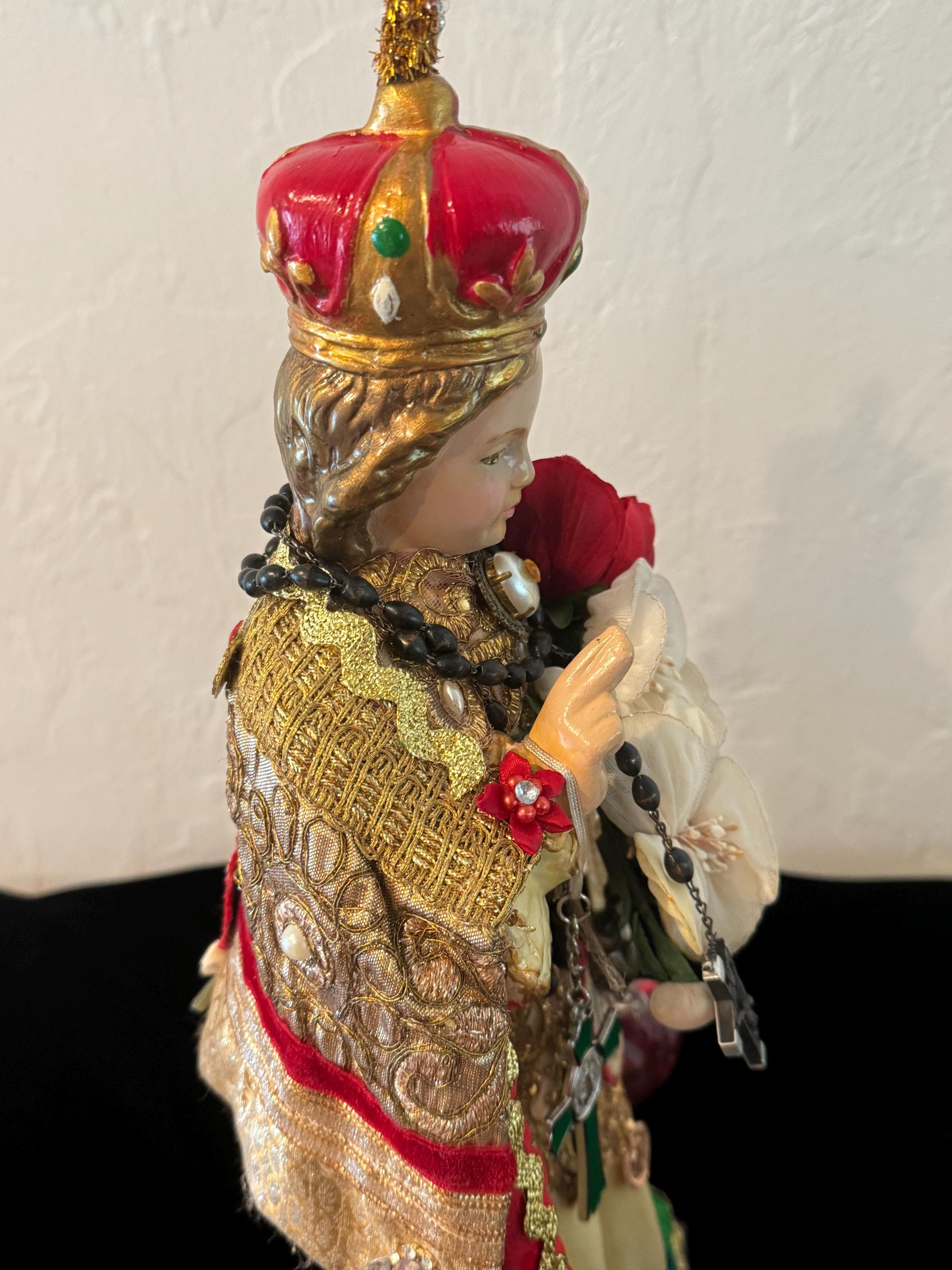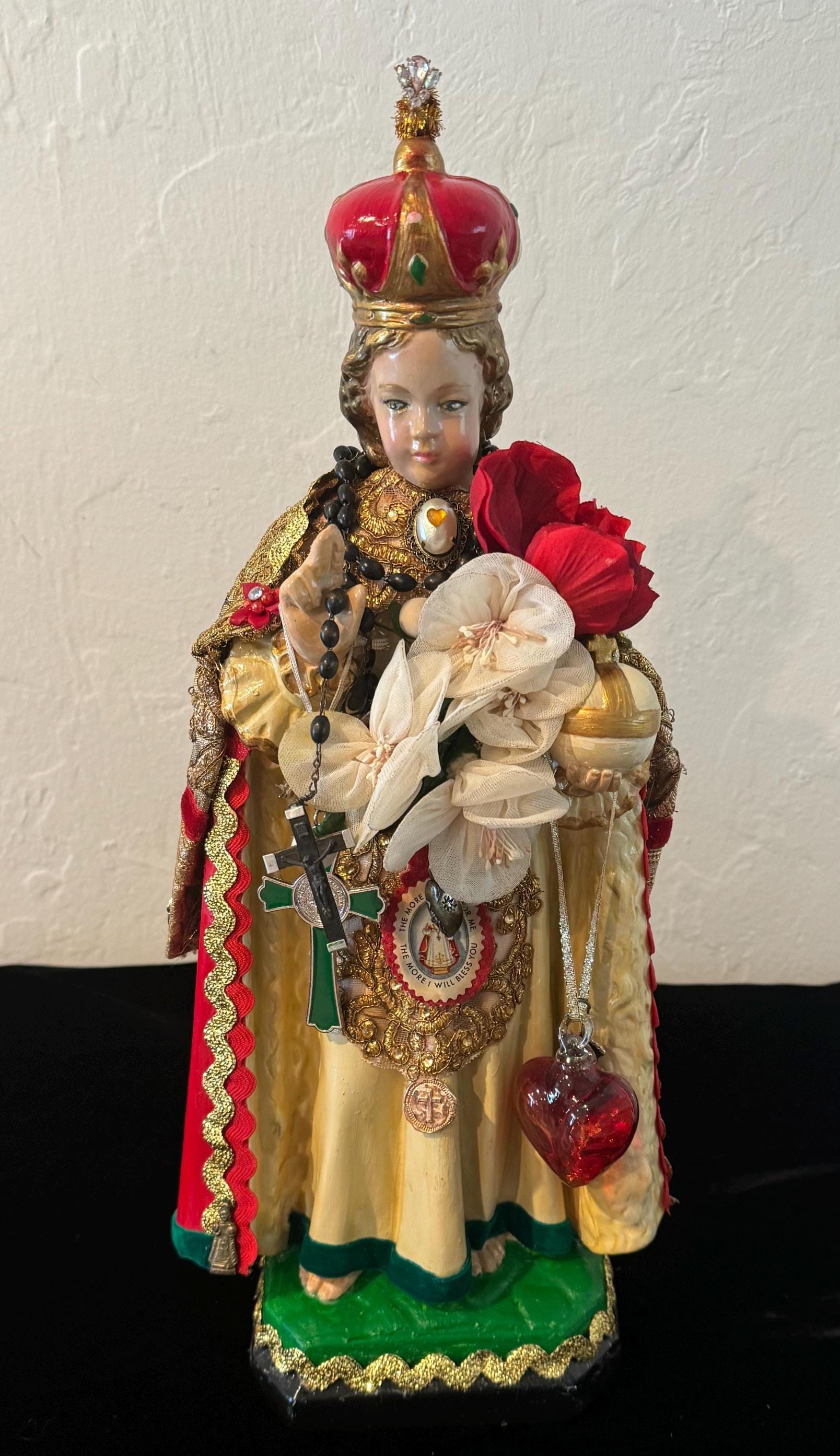Infant of Prague Devotional Art Statue "Christmas Dress" Infant of Prague - We have painted and adorned him in colors of Christmas .