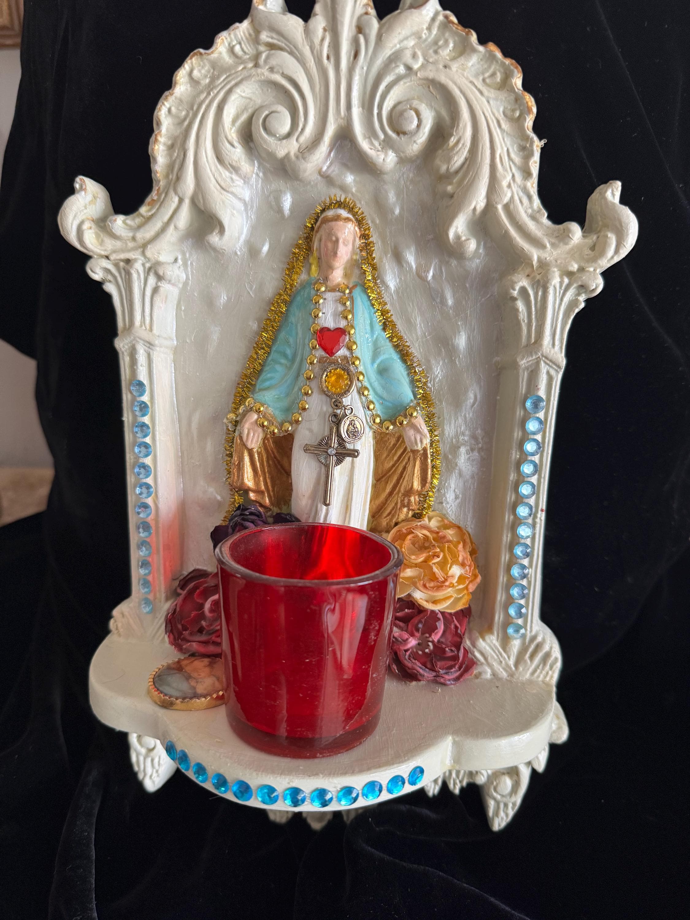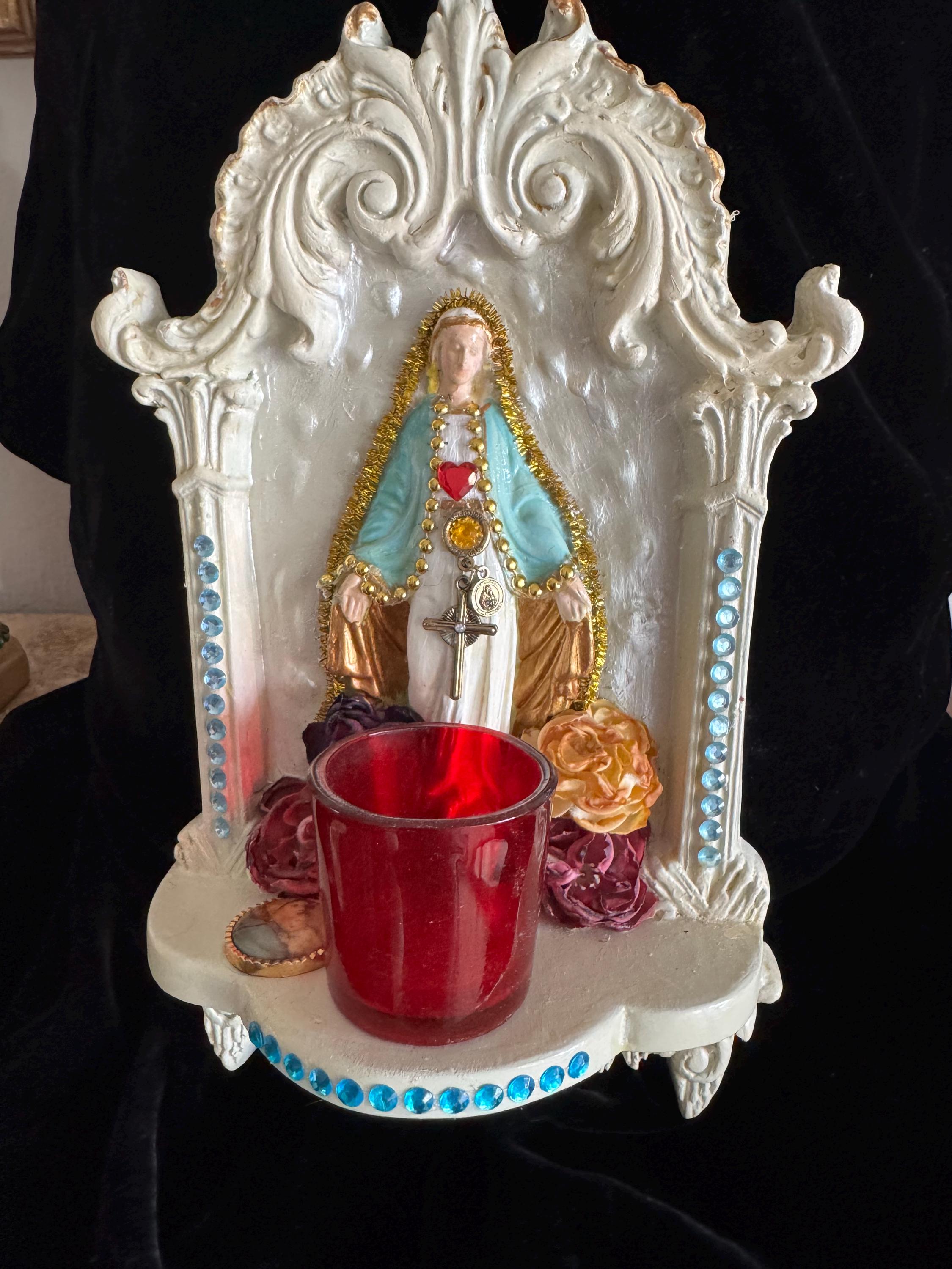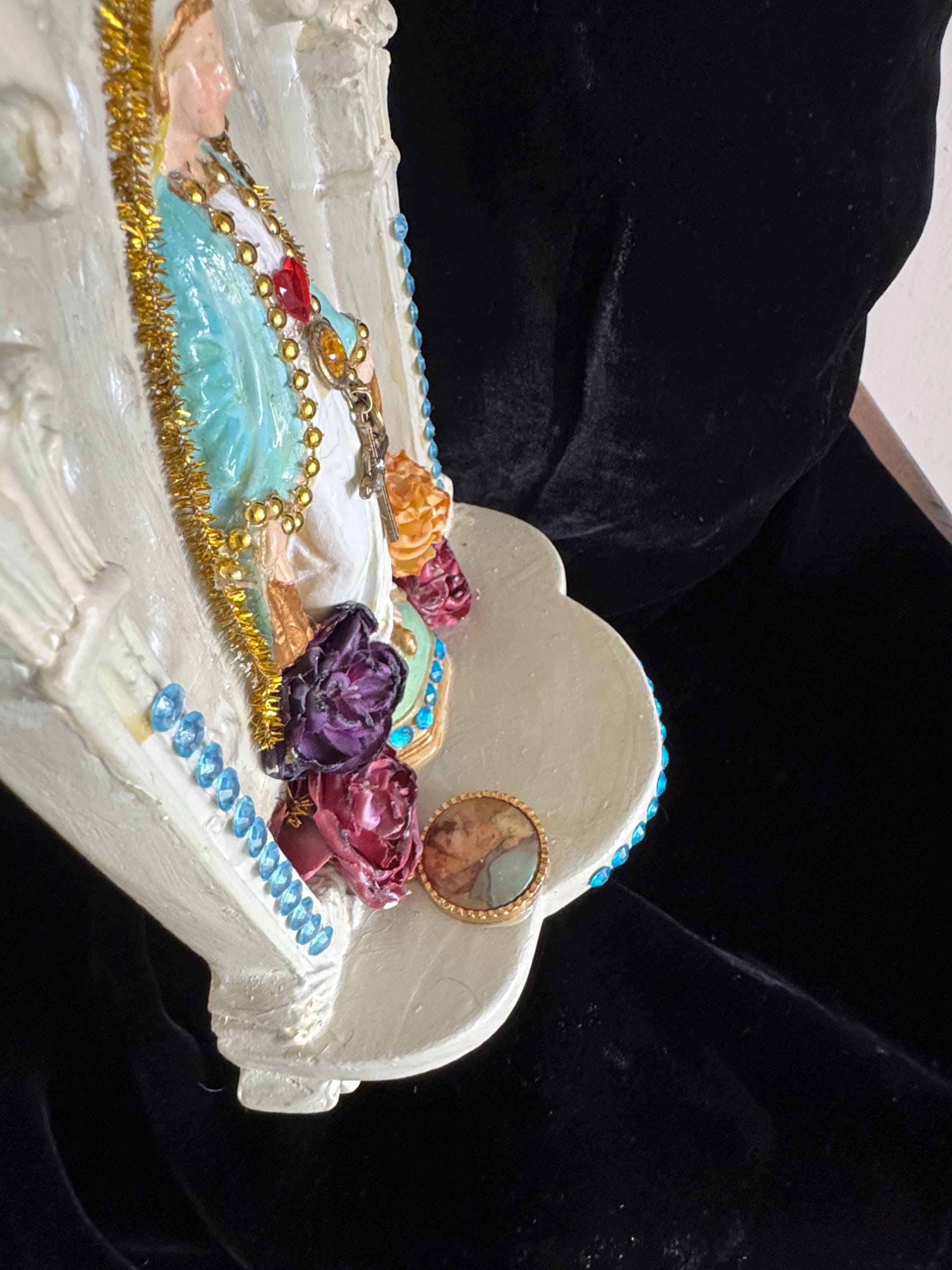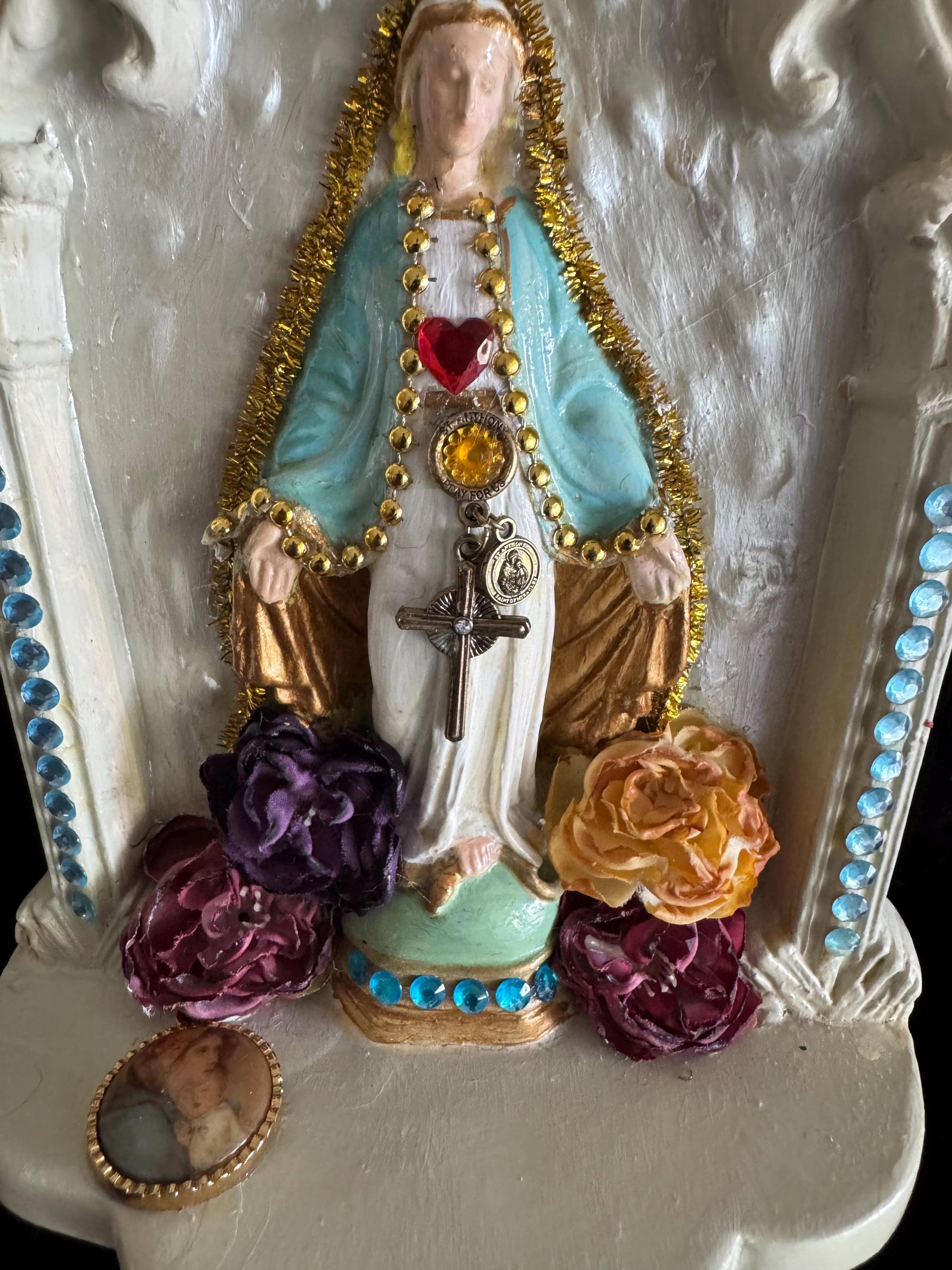 Devotional Art Statue Art Statue by 2nd Hand Revival Artisan Handmade and Unique Virgin Mary Wall Altar Devotional Art Statue